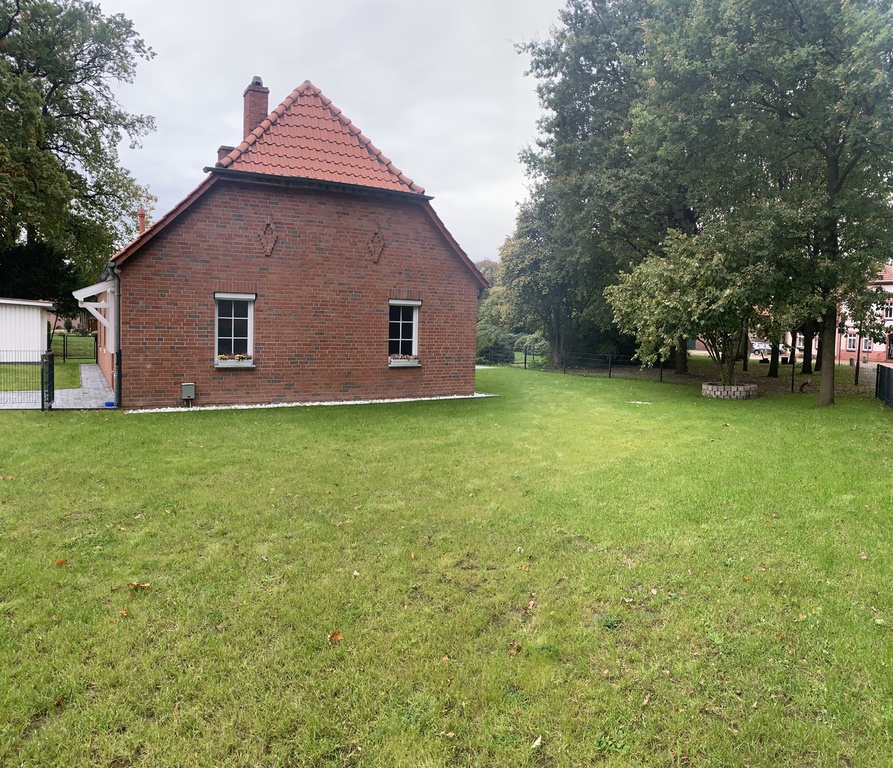 Nach umfangreicher Arbeit im Grundstücksbereich wurde der Boden abgetragen und neue Muttererde aufgetragen und ein neuer Rasen angelegt.