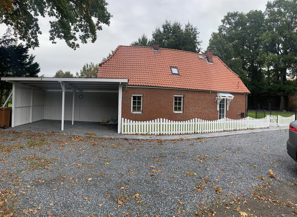 Doppel Carport, Garten komplett neu eingezäunt, Garten neu angelegt. Terrasse und Carport und Zuwege komplett neu gepflastert. Zufahrtsstraße neugestaltet und ausgearbeitet.