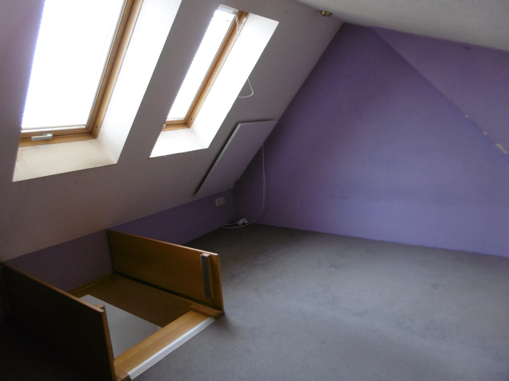 OG: 4 Zimmer (inkl. ausgebautes DG), Küche mit Balkon und Treppe zum Garten, Bad mit Wanne und Dusche, Kaminofen im Wohnzimmer