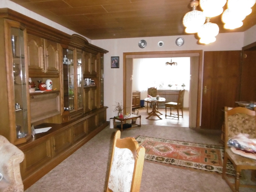 EG: 3 Zimmer, Küche mit Ofen, Bad mit ebenerdiger Dusche, HWR, Garage, Carport mit Werkstatt, Gartenhaus.