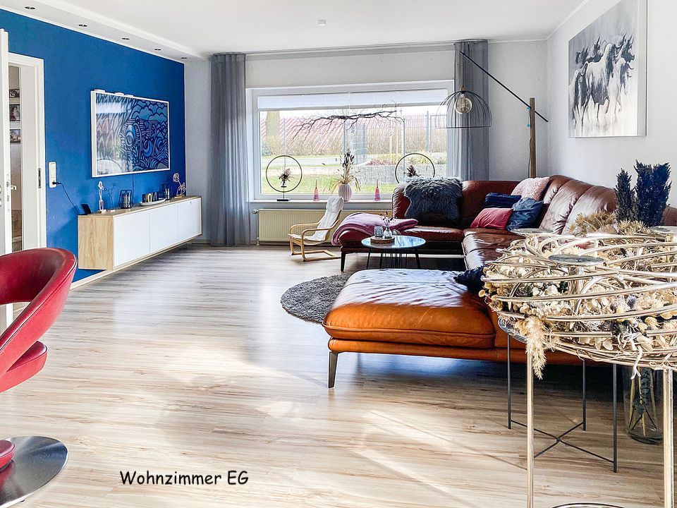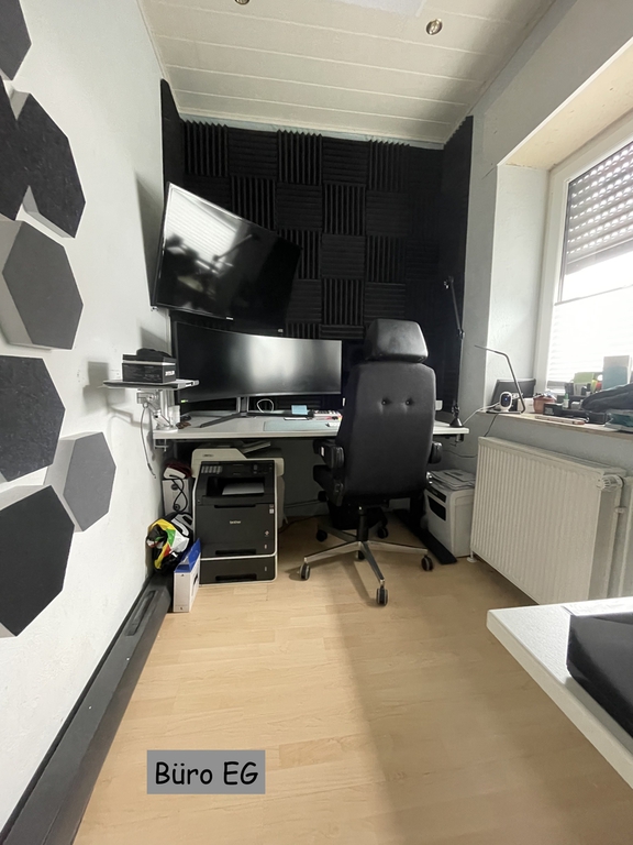 EG: Wohn-/ Esszimmer, Küche mit EBK + Abstellraum, Büro, Bad mit Wanne und ebenerdiger Dusche