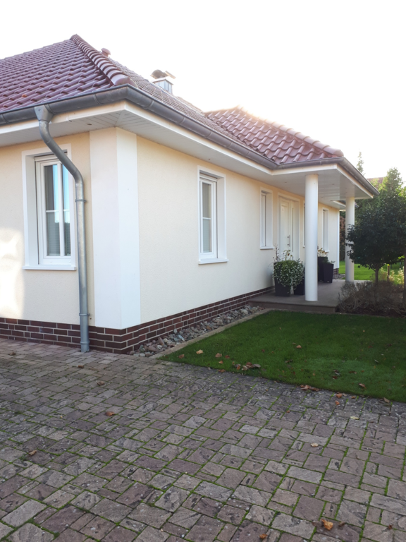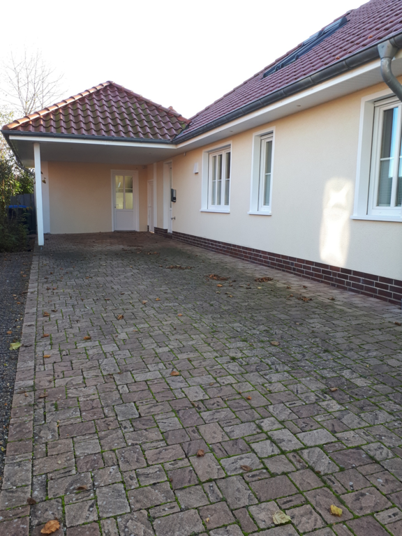 Erdgeschoss: 2 Zimmer, Wohn- und Küchenbereich inkl. hochwertiger Einbauküche, Elektrische Rollläden, Hauswirtschaftsraum mit Nebeneingang. Bad mit Wanne und Dusche (barierefrei), Gäste WC mit Dusche, Abstellraum, Kaminofen (Panoramakamin), Terrasse überdacht.