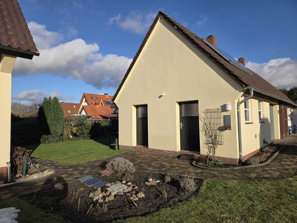 EG: 3 Zimmer, Küche, Bad, überdachte Terrasse, von der Küche aus direkter Zugang zum Garten
