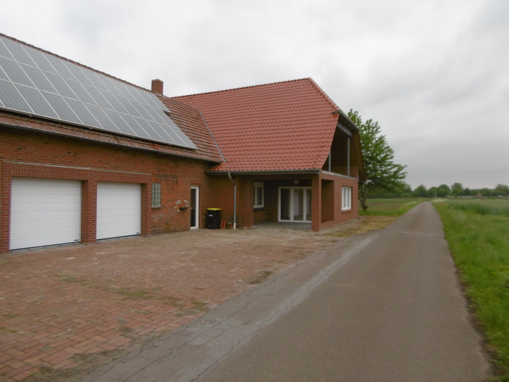 EG: 4 Zimmer, 1 Küche, 1 neues Bad mit Dusche und Wanne, Terrasse, Doppelgarage mit WC, Garten.