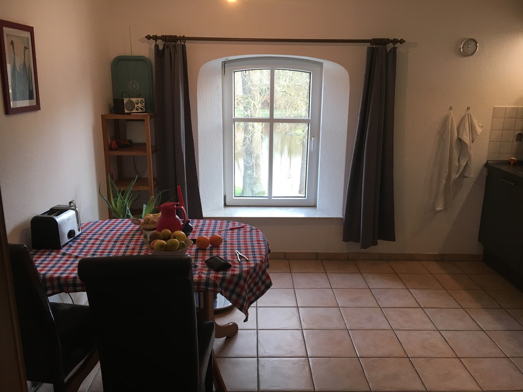 Wohnen in einer historischen Mühle. 1998 komplett saniert. 4 Zimmer, gelegen im 1. OG mit Balkon und Garage, Küche mit EBK, Bad mit Dusche und Wanne, Abstellraum und Keller.