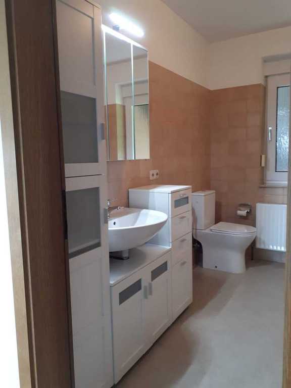 Bad | 1 mit Dusche + Wanne und Einbauschränken |